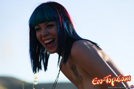 Krysta Kaos - необычная модель, для любителей неформальных девушек, с крашеными волосами неестественных цветов, татуировками по всему телу и пирсингом. Однако тело девушки надо заметить - сексуально и татушки очень даже ничего, яркие и игривые, впрочем видимо как и сама девушка...