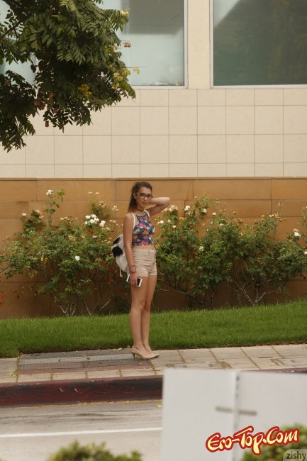 Молоденькая девушка 21 года решила устроить шопинг в торговом центре, в одном из магазинов красавица задрала свою маячку и показала красивые сиськи аккуратной формы и с симпатичными сосками. Но на этом она не остановилась и приспустила шортики, обнажив волосатый лобок.