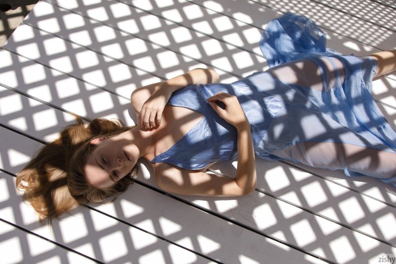 Вернувшись домой с волнующей идеей в голове и мигом сняв длинное платье, оставаясь в одних только трусиках, привлекательная и весьма сексуальная девушка устраивает легкий бандаж своим маленьким сиськам. Обвязавшись канатом, стройная особа устраивается на кровати и чередует разные возбуждающие позиции, порой нежно трогая сосочки.