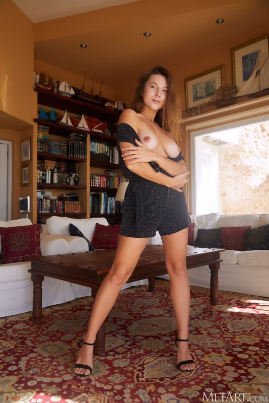 Чувственно прогибаясь перед всеми камерами в разных эротических позах, горячая сексуальная телка с красивыми сиськами устроила для нас настоящий стриптиз. Медленно стянув с себя платье, голая красотка разлеглась на низеньком столике и лишь под конец съемки решила показать нам между ног свой волосатый лобок и бритую сочную письку.