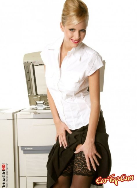 Секретарша в офисе развлекается как может. Очаровательная блондинка в белой блузе изящно покажет нам свои сиськи. Помимо сисек, она шикарно снимет с себя черные трусики, чтобы намекнуть на готовность к более развратным действиям. Шалунья специально перед нами будет широко раставлять ноги, доводя нас до безумия.