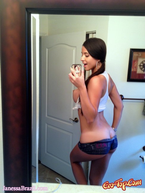 Janessa Brazil решила порадовать нас домашними фото и взяв в руки айфон подошла к зеркалу, что бы нащёлкать парочку эротичных снимков. Девушка медленно раздевается, вытаскивая большую грудь из под белой майки, стягивает трусики, показывая нам свою упругую, пышную попку и гладко выбритую киску, которую, страсть как хочется потрогать руками... Для тех кто следит за этой моделью, данный фото сет станет приятным сюрпризом, за который обязательно нужно поставить пять сердец аппетитной брюнетке, мулаточке...