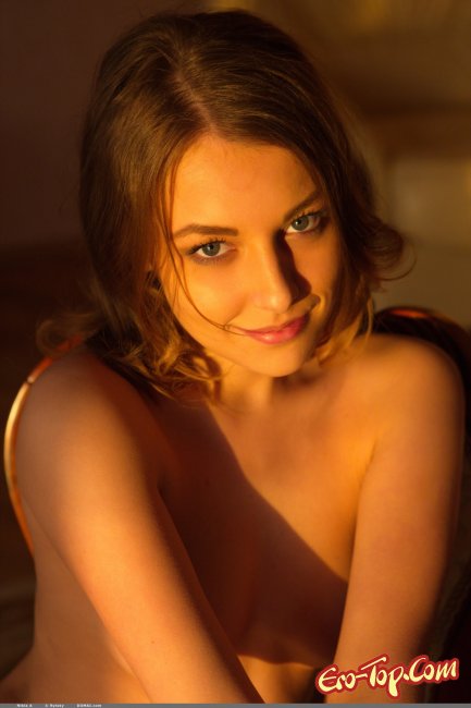 Эротика » Молодые девушки » Шатенка с пирсингом в пупке позирует голой на стуле