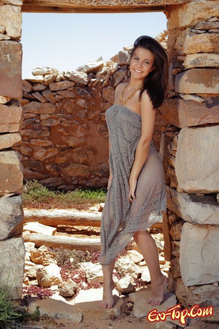 Привлекательная обнажённая красотка с красивой попой и упругим телом, оказавшись на руинах старого здания принялась страстно демонстрировать свои невероятно сексуальные формы. Полностью раздевшись, она старалась поворачиваться упругой попкой, чтобы лучше засветить гладко выбритую киску, выглядывающую между аппетитных булочек.