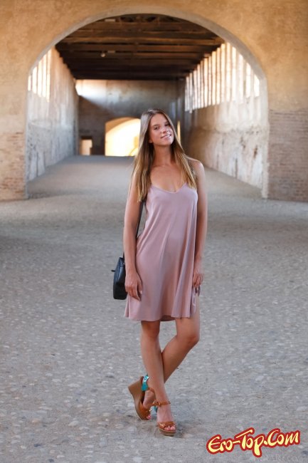 Красивая девушка в привлекательном платье вернувшись домой с прогулки принялась медленно раздеваться в спальне. Первым делом ей удалось засветить натуральные сиськи, а устроившись на огромной постели продемонстрировать гладенькую киску, с сексуальными половыми губками.