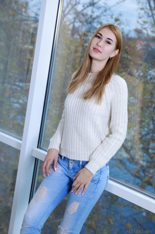 Начав эротично позировать рядом с домом, высокая девушка, про таких ещё говорят шпала, с худенькой талией в джинсах заигрывает с нами и вскоре раздевается догола. Обнаженной стройняшка с плоскими сиськами поглаживала красивую подтянутую попку с узкими бёдрами руками и меняя ракурсы засвечивала бритую письку с гладким лобком.