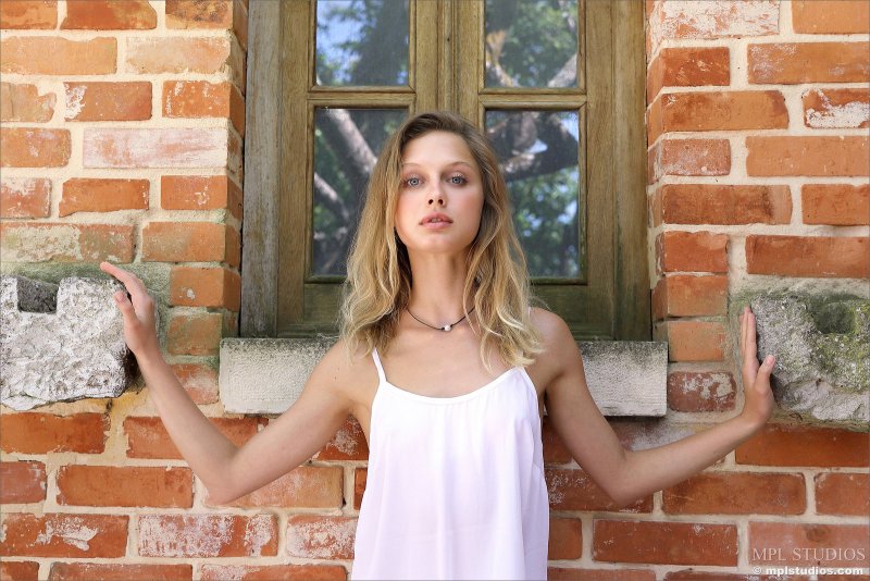Эротика » Молодые девушки » Худенькая девица на фоне кирпичной стены