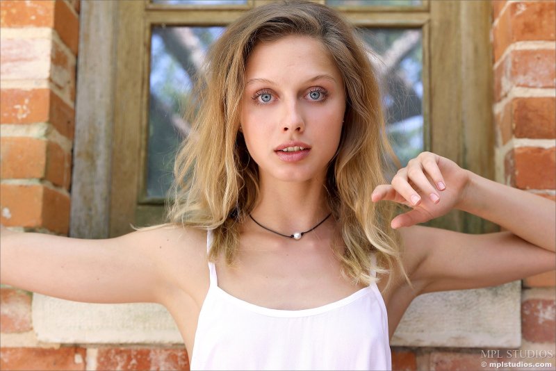 Очаровательная худенькая девица с милейшим взглядом разделась на фоне кирпичной стены и голая демонстрирует нам своё тощее тело. Красавица хвалится маленькими сиськами с миниатюрными сосками, выставляет на показ бритую письку и позволяет взглянуть на её узкую попку, постоянно нежно поглядывая прямо в объектив фотокамеры.