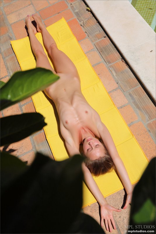 Выбравшись летним днем к бассейну, спортивная и полностью голая худышка с радостью начинает заниматься эротичной йогой, ощущая удовольствие и возбуждение. Меняя ракурсы, стройняшка с плоской грудью смогла засветить таким образом гладенькую письку и аккуратную попку.