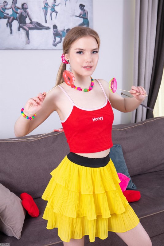Игривая молодая куколка в майке и короткой юбке решительно сняла их с себя вместе с трусами и оголила на камеру бритую писю. Затем обнаженная детка с маленькой грудью принялась похотливо извиваться всем телом на диване и с разных ракурсов демонстрировать нам между ног свою большую сочную пиздёнку.