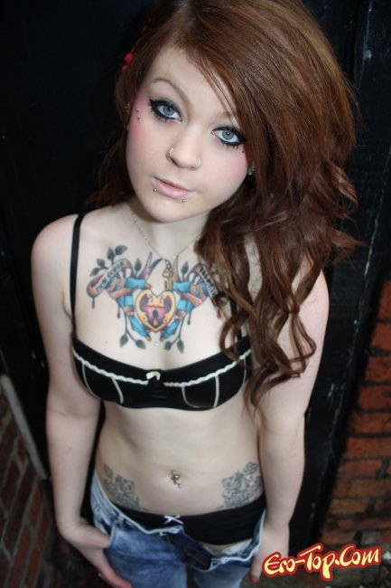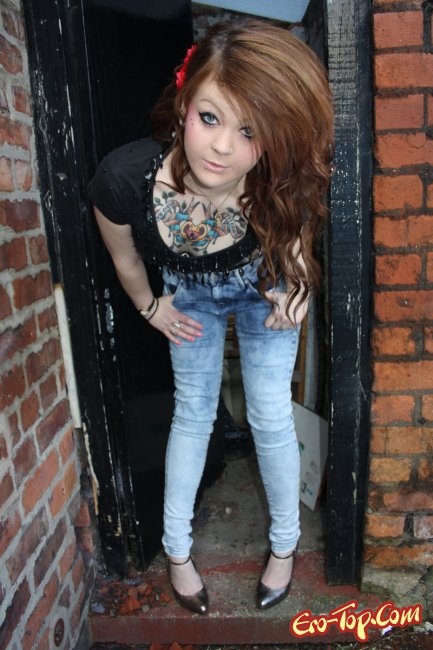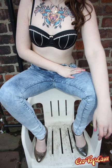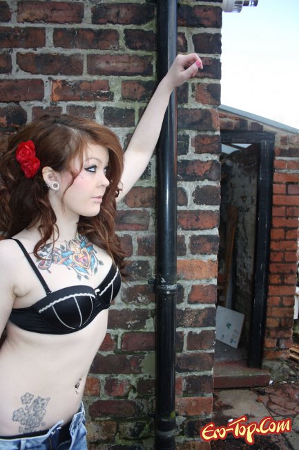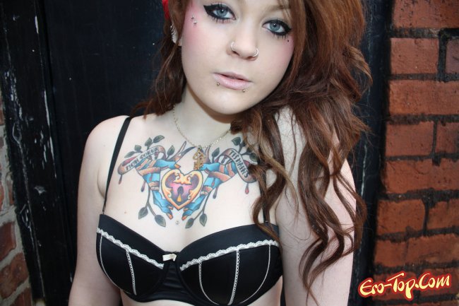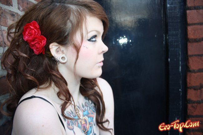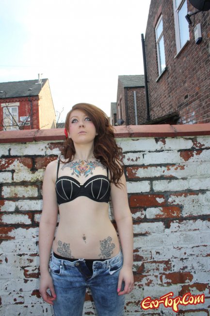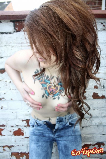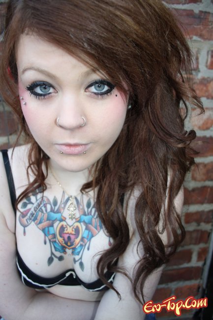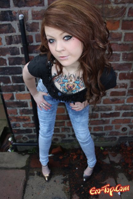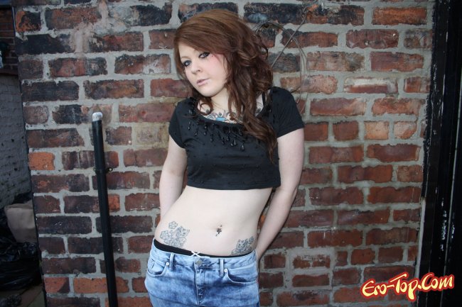 Дикая полноватая самочка по имени Amalie любит демонстрировать свое обнаженное тело. Она набила себе множество хорошеньких татуировок, которые украшают и без того сексуальное тело. Кроме этого, у неформалки пирсинг в носу и в сосочках. Девочка одета в синие обтягивающие джинсы, а по ходу дела ее тело медленно обнажается и вся ее страсть и оторванность выплескивается наружу. К концу фото сета развратница полностью раздевается и показывает гладкую киску и упругую попку.