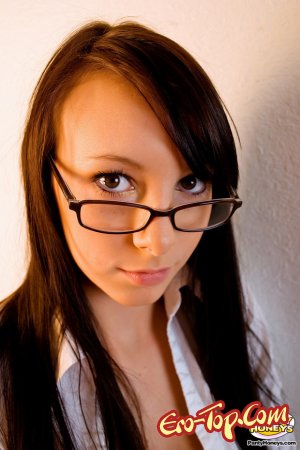 Юная девушка студентка, в сексуальных трусиках и деловых очках. Красивая, стройная и с большой грудью.