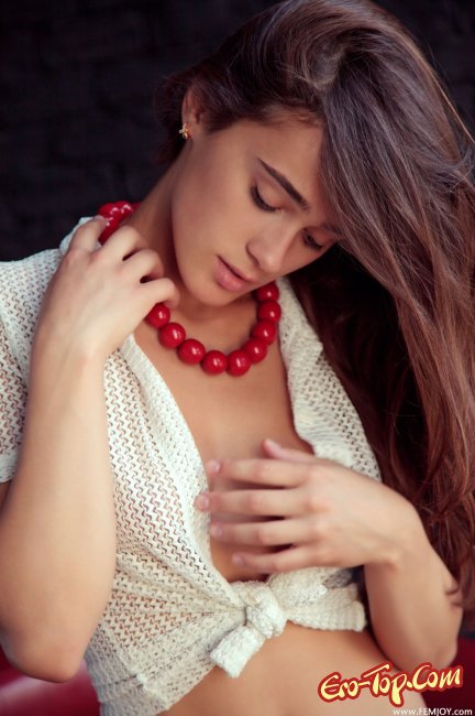 Молодая голая девушка раздевается перед камерой, демонстрируя своё стройное тело с гладко выбритой киской, подтянутой попкой и небольшой грудью. Красотка принимает различные сексуальные позы, находясь на красном кожаном диване. Модель зовут Raia и она совсем не стесняется показывать свои даже самые откровенные части тела.