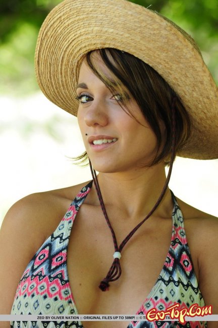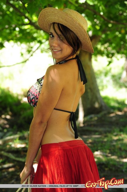 Соблазнительная девушка в соломенной шляпе отправилась на пикник, захватив с собой плетеную корзинку и надев купальник и длинную красную юбку, под которой не было трусиков. Симпатичная красотка с татуировкой и пирсингом, удобно расположившись в тени деревьев, принялась обнажаться. Шалунья раздвигала гладкую киску, хвастала соблазнительной попкой и натуральной грудью.