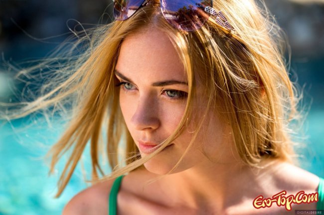 Выйдя на задний дворик своего загородного дома красивая девушка решилась снять с себя купальник и голой отправится в бассейн поплавать. Уже в воде она старалась эротично позировать перед фотографом и красиво демонстрировать свое сексуальное тело с соблазнительными формами, упругой попкой и гладко выбритой писей.
