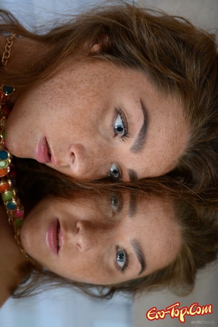 Привлекательная молоденькая девушка в веснушках, решила полностью оголится и попозировать, в процессе показывая голенькую бритую писку с волосиками на лобке и упругую попку, присаживаясь на зеркальный столик и вставая раком на полу. Чередуя позиции, стройняшке так же удалось засветить натуральные сиськи.