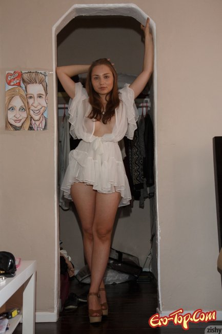 Привлекательная девушка в прозрачном халатике и эротичных кружевных белых трусиках, начала грациозно позировать на диване, стараясь показывать нам сексуальное тело и подкаченную попку. Не останавливаясь чередовать позиции, красотка стягивает лишнее и максимально подробно демонстрирует упругие натуральные сиськи с возбуждающими сосками.