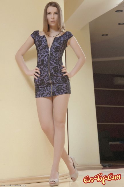 Симпатичная молоденькая девица с упругими ягодицами, скинув платье, берется эротично позировать на кухне, стараясь раздвигать длинные ножки. Вначале красавица маленькими сиськами демонстрирует бритую письку с волосатым лобком, а поворачиваясь спинкой, более подробно показывает попку.