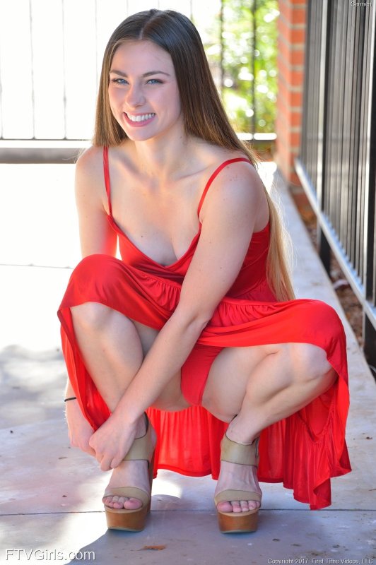 Выбрав самый безлюдный закуток на улице, длинноволосая девушка в красном платье сняла розовые трусы, а затем эротично позирует перед камерой, открывая соблазнительную промежность между ног. А присаживаясь на корточки и раздвигая ножки молодая красотка с маленькой грудью максимально подробно демонстрировала возбуждающую щелку.