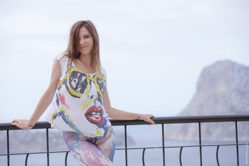 Выйдя на балкон подышать свежим воздухом, симпатичная молодая девица со стройной фигурой и красивой попой, мило улыбаясь, начинает эротично позировать и снимает красочные лосины с майкой. В процессе эротической съёмки сексуальная героиня часто обхватывала маленькие сиськи руками, а затем ложилась на пол, где с радостью показывала нам бритую письку и упругую попку с шикарными ягодицами.
