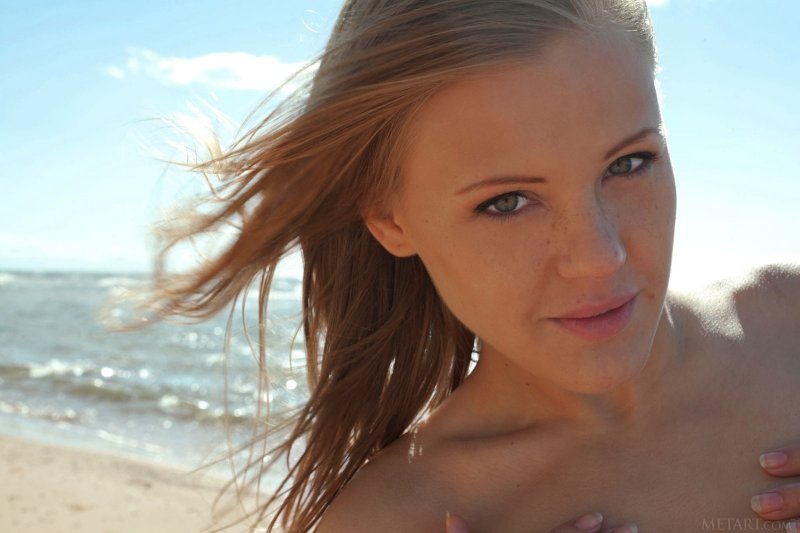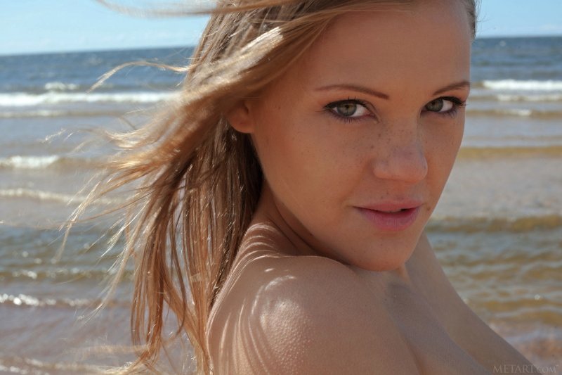 Прогуливаясь на пляже и наслаждаясь жарким солнечным днем, сексуальная сучка с упругой попой и большими натуральными сиськами, разделась до гола перед камерой и демонстрирует нам свои смачные формы. Возбуждаясь от происходящего на берегу моря, девушка грациозно поднимает ноги, и во всей красе открывает перед нами гладко выбритую киску.