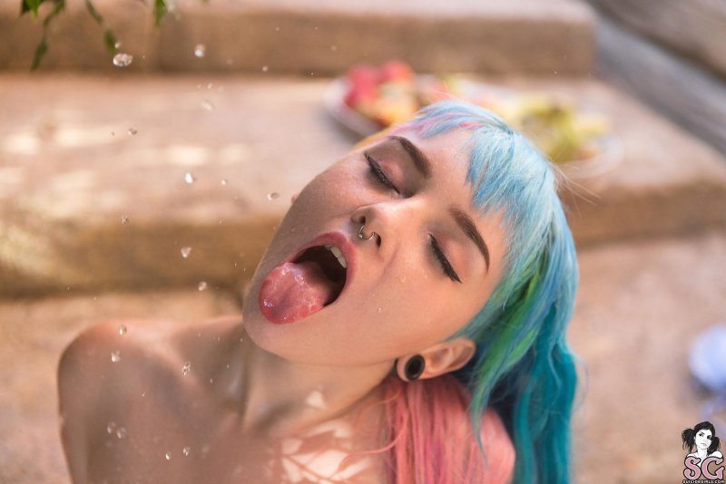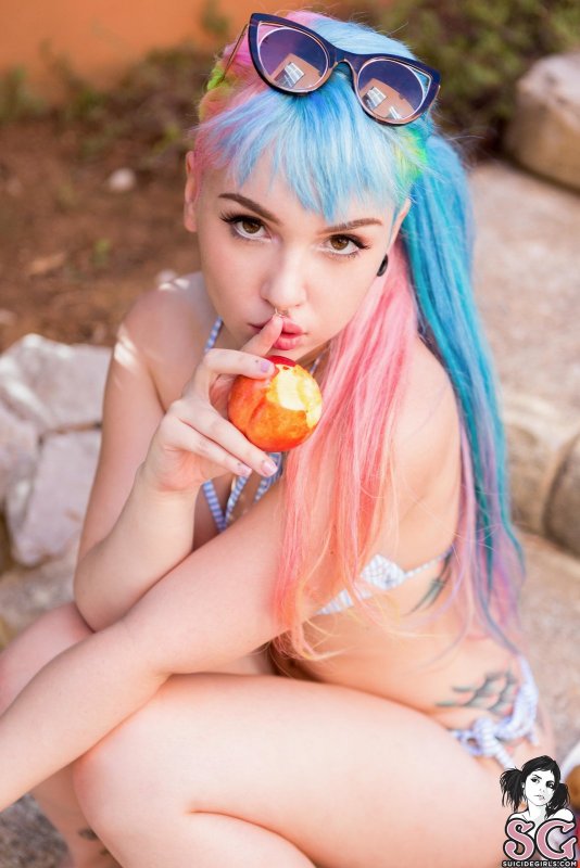 В жаркий день так хочется прохлады, вот и эта яркая девица с аппетитной попкой на камеру снимает с себя бикини и начинает сексуально есть свежие сочные фрукты. Необычная красота молодой девушки притягивает все взгляды, особенно когда она чувственно трясет своими натуральными упругими сиськами.