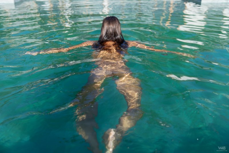 Молодая и дерзкая девушка с красивой упругой попкой игриво разделась до гола на летнем отдыхе, крупным планом демонстрируя на камеру свою бритую нежную киску. Обнаженная детка с миниатюрными упругими титьками расслабленно плавает в большом бассейне на заднем дворе, подставляя под жаркое солнце свое стройное влажное тело.