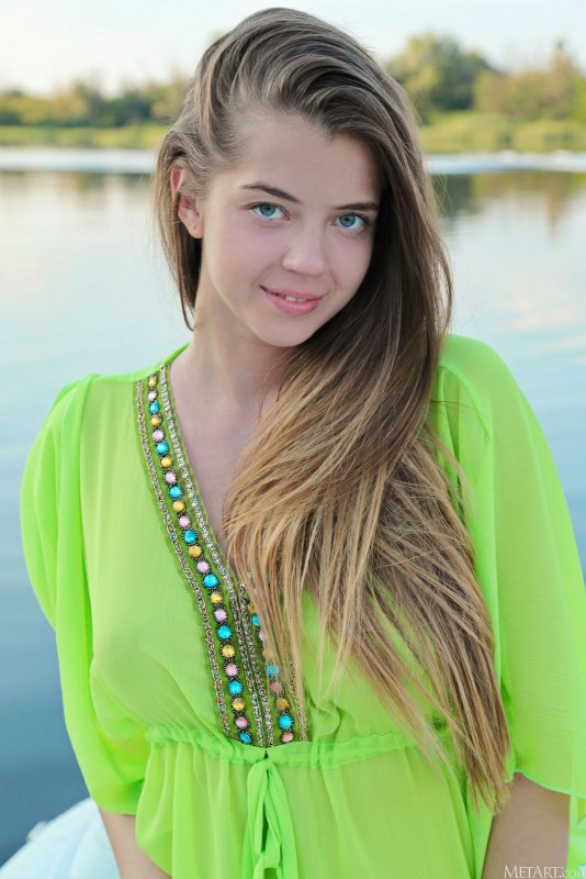 Сексуальная русая девушка с натуральными сочными формами отдыхает на природе, катаясь на надувной лодке. Игриво сняв с себя одежду, молодая девица оголила свое аппетитное тело с большими натуральными сиськами, а затем ложится с широко раздвинутыми ногами и открыто демонстрирует на камеру крупным планом свою бритую розовую киску с узкой темной щелкой.