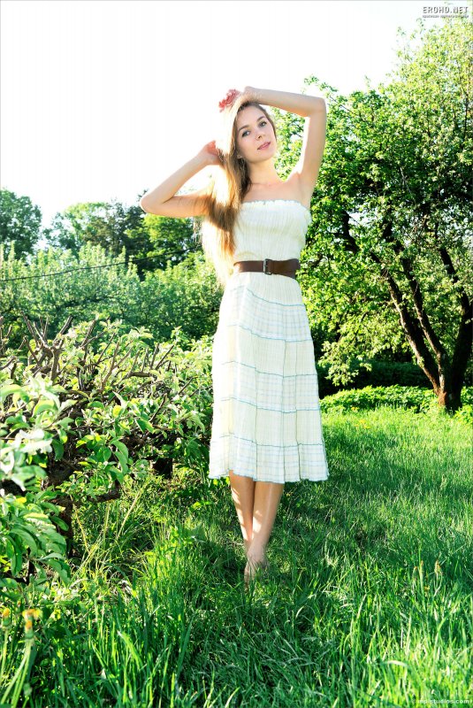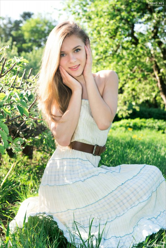 Молодая красавица без трусиков возбуждающе играется с платьем и эротично позирует на природе, постепенно оголяя свои миниатюрные сладкие прелести. Развратная кокетка с упругими натуральными титечками расслабленно лежит на зеленой траве и, широко раздвинув свои красивые ноги, крупным планом выпячивает на камеру свою гладкую пухлую киску.