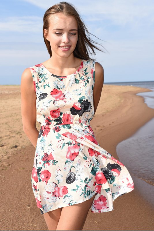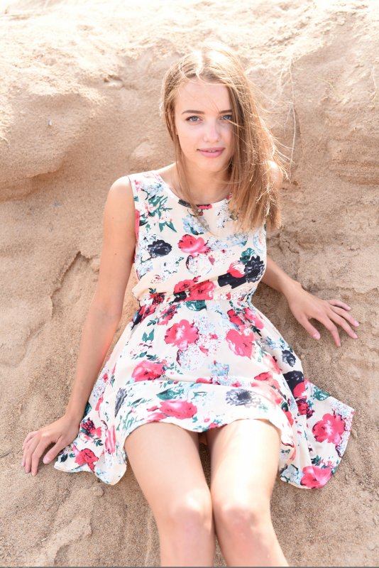Прогуливаясь по пустому песчаному пляжу, симпатичная девица без трусиков игриво сняла с себя короткое платье и принялась охотно демонстрировать на камеру свои выдающиеся прелести. Нежась под лучами палящего солнца, голенькая детка с натуральными упругими сиськами с разных ракурсов бесстыже светит своей бритой нежной писечкой.