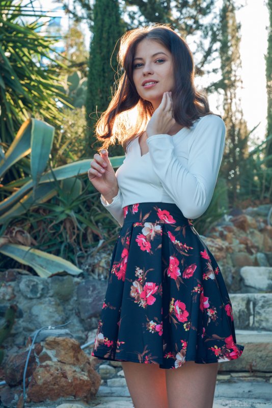 Кокетливо задирая перед камерой короткую юбку и медленно стянув с себя розовые трусики, молодая детка оголила сочную упругую задницу и, развратно позируя обнаженной в парке, без стеснения демонстрирует всем свою раскрытую гладкую промежность с мясистой розовой пиздёнкой.