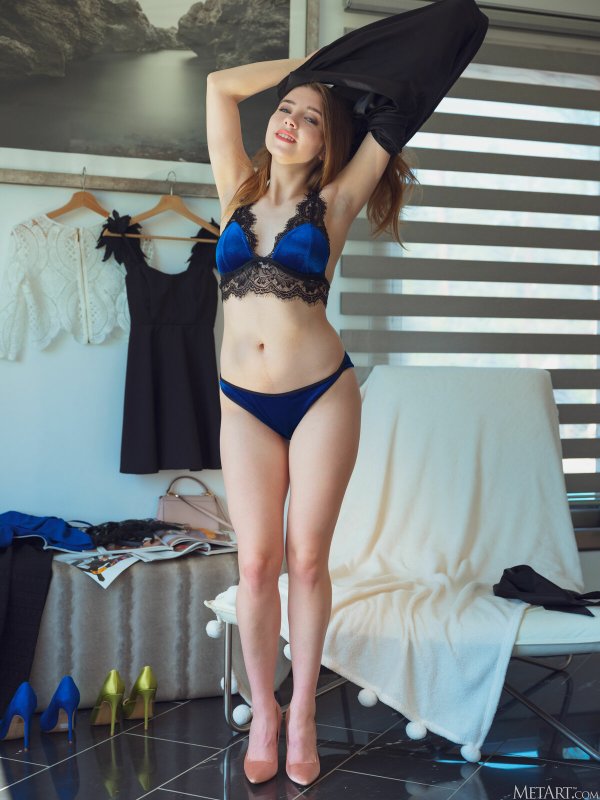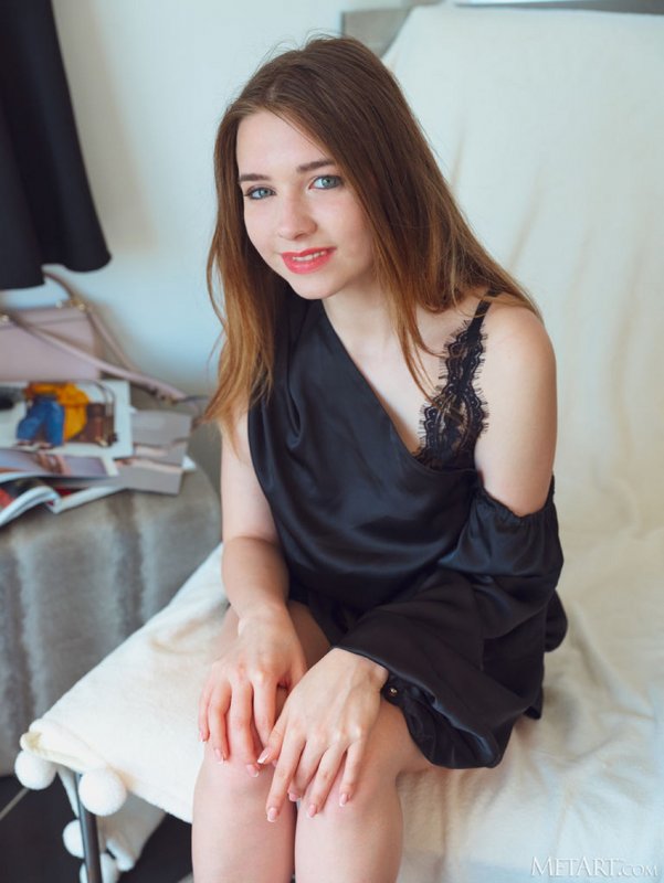 Кокетливо поправляя свое короткое платье, очаровательная скромная детка эротично играется со своими кружевными трусиками и мельком засветила бритую розовую киску. Постепенно раздевшись до гола, молодая девушка с натуральными острыми сиськами развратно позирует перед камерой всем телом, открыто демонстрируя нам свои самые интимные места.
