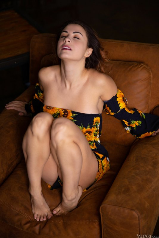 Эротично стянув с себя короткое платье и выставив на показ выдающиеся прелести, горячая дамочка с красивой подтянутой фигурой развратно позирует обнаженной в кресле, страстно извиваясь всем телом и с разных ракурсов засвечивая между ног свою бритую сочную письку с волосатым лобком.