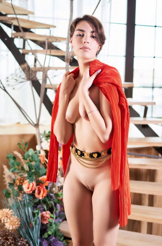 Эротично стянув со своего тела платье с трусиками, развратная тётка с миниатюрными натуральными титьками похотливо вертит перед камерой сочной голой задницей и, чувственно прогибаясь в разных возбуждающих позах, демонстрирует между ног свою гладкую нежную киску.