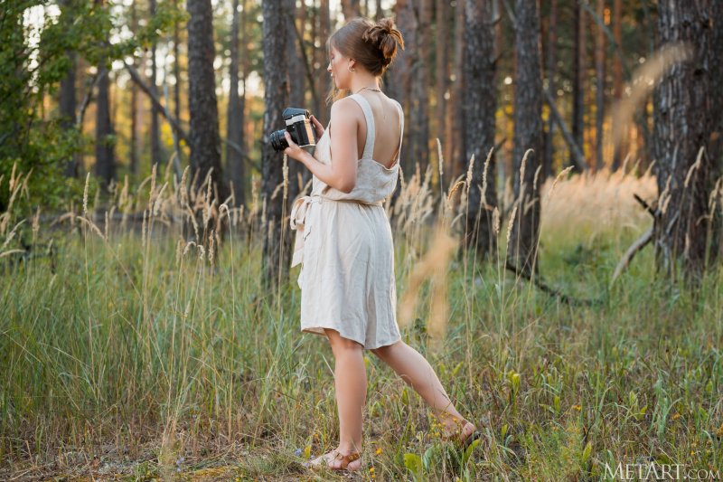 Устроив себе эротическую фотосессию, привлекательная барышня возбуждающе медленно разделась на природе до гола и, уверенно извиваясь всем телом перед работающей камерой, во всей красе демонстрирует нам свою аппетитную попку и сочную губастую письку между ног.