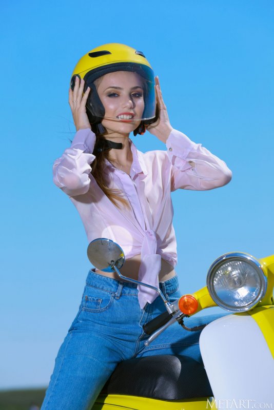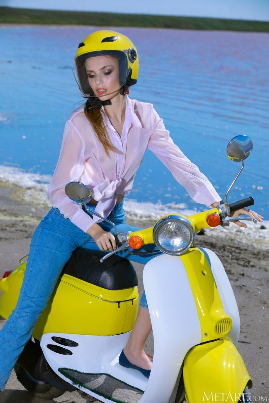 Остановившись на берегу моря и устроив прямо на пляже стриптиз, красивая девушка на мопеде возбуждающе медленно оголила перед камерой свое стройное тело с упругими сиськами и, поворачиваясь к нам своей подтянутой попочкой, раскрывает между ягодицами бритую письку и сжатый анус.