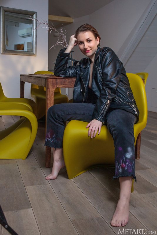 Страстно и нетерпеливо сорвав с себя всю одежду и покрасовавшись перед камерой голышом, горячая чертовка с широко раздвинутыми ногами легла на стол и, ловя на себе восхищенные возбужденные взгляды, вовсю светит в промежности своей бритой аккуратной пиздёнкой.