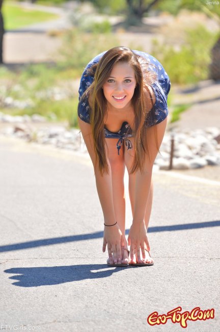 Лучезарная девушка прогуливалась теплым летним деньком по улице и решила сделать пару забавных фото, чтобы потом было что вспомнить. Как раз, кстати, у нашей героини с хорошим задком под платьем ничего не было. В процессе фотосъемки малышка начала понемногу засвечивать свои интимные места, а потом и вовсе полностью обнажилась, и даже показала киску с интимной стрижкой.