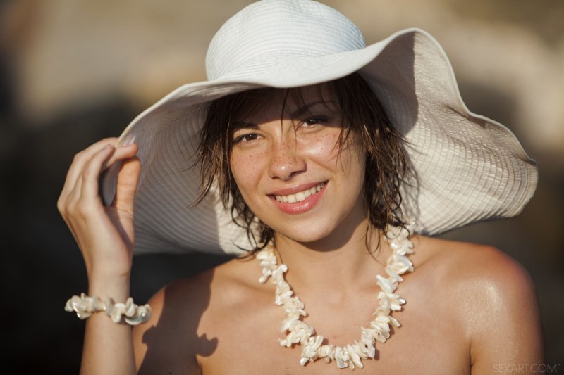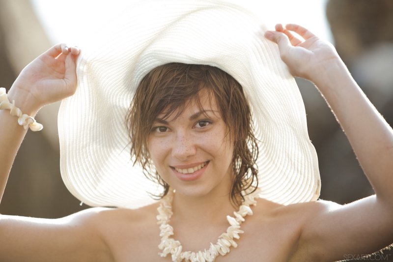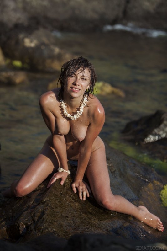 Соблазнительная девушка без комплексов разделась на пляже и обнажённая купается в море, омывая своё стройное тело солёной водой. При этом, брюнетка не стесняется демонстрировать перед фотокамерой свои прелести. Она охотно делится с нами прекрасными видами своей бритой киски, упругой груди и притягательной попки...
