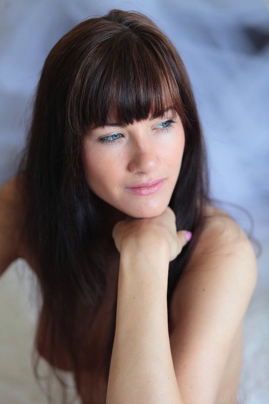 Очаровательная скромная девка с голубыми глазами, лежа в постели, принимается эротично позировать и поглаживая себя руками медленно стягивает трусики. Лишившись остатков нижнего белья сексуальная красотка с маленькой грудью демонстрирует нам бритую письку с аккуратной прической на лобке.