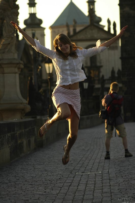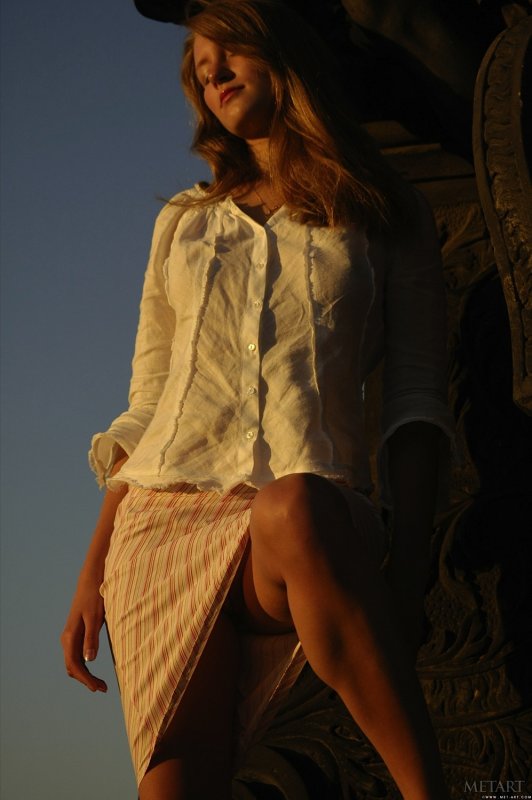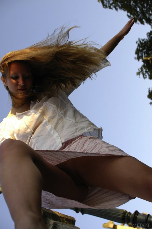 Оказавшись в городе, симпатичная девушку с наслаждением прогуливается на улице и в процессе задирает юбку, под которой не было нижнего белья, и светит бритую письку с волосатым лобком. В будущем сексуальная милашка уединилась в укромном месте и так же продемонстрировала упругую попку и маленькие сиськи.
