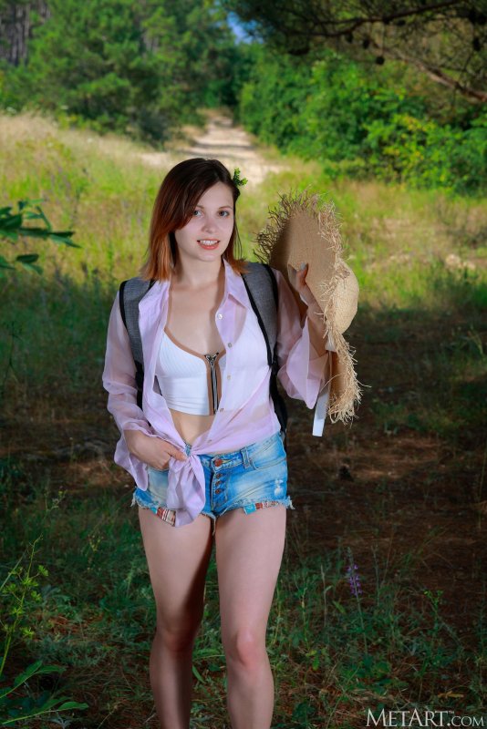 Отправившись в поход в лес и остановившись ненадолго на поляне, развратная шлюшка в коротких шортиках неторопливо стянула их перед наблюдающими за ней зрителями и кокетливо засветила на лобке интимную стрижку. Вытворяя на камеру разные неприличные вещи, сексуальная чертовка с упругими сиськами и жопой старается в самых откровенных позах как можно подробнее показать в промежности свою бритую маленькую письку.
