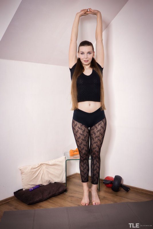 Быстро оголив под майкой свои миниатюрные тити и немного покрасовавшись перед камерой в прозрачных лосинах, возбужденная телка с пушком на лобке горячо прогибается на полу в самых откровенных позах и на показ дрочит сочную пизду своим любимым вибрирующим самотыком.