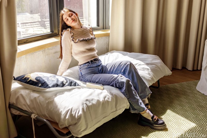 Эротика » Голые письки » Девица с натуральными сиськами сняла джинсы