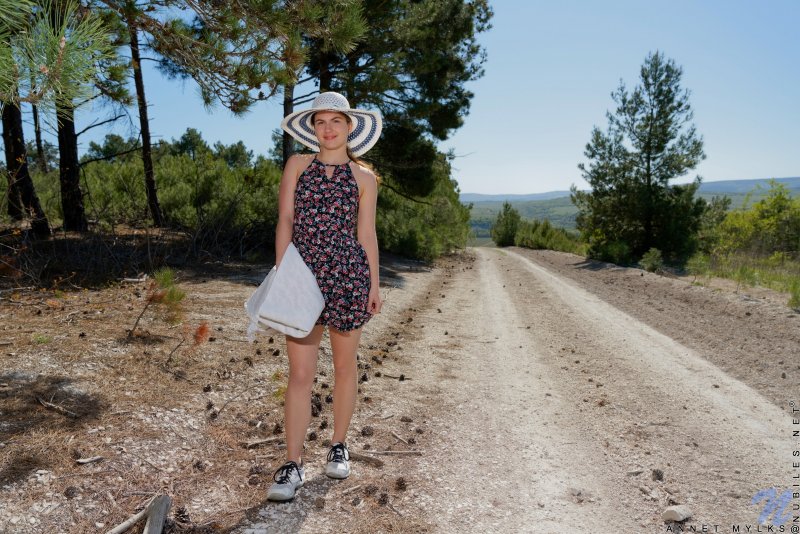 Найдя безлюдное, то рискованное место, развратная дамочка медленно снимает с себя перед объективом камеры всю свою одежду и, с разных ракурсов светя своими миниатюрными натуральными прелестями, бесстыже мастурбирует сочную бритую пизду с рабочей дыркой у проселочной дороги.
