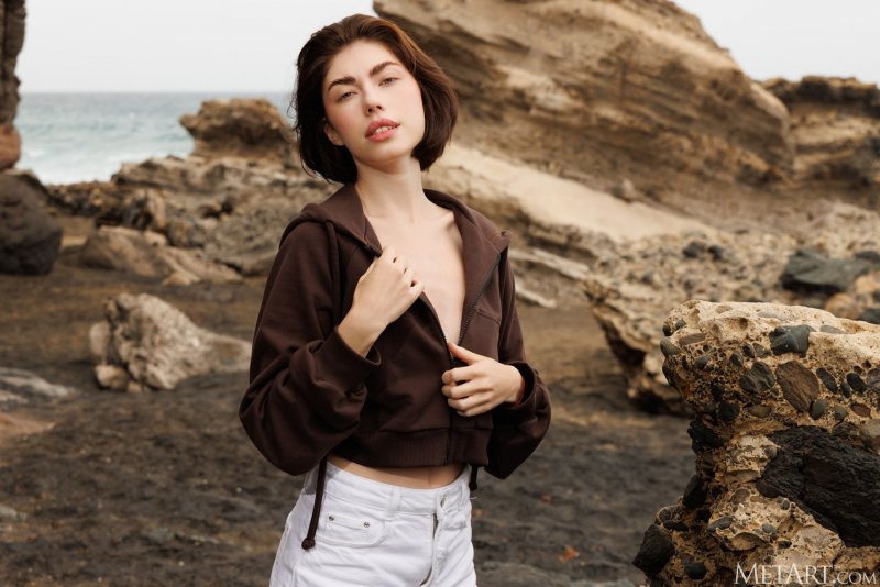 Эротично стянув с себя всю одежду и выставив на показ свои миниатюрные прелести, тощая девица с торчащими рёбрами похотливо раскрывает свою голую бритую промежность на пляже и, умело прогибаясь в самых неприличных позах, показывает всем отдыхающим свою сочную письку.
