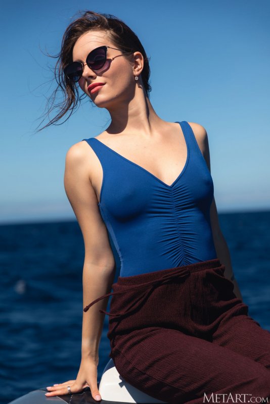 Быстро избавившись от всей одежды и подставив свое стройное сексуальное тело палящим лучам солнца, голая сучка с раскрытой на показ рогаткой с удовольствием загорает в открытом море на своей лодке и одновременно демонстрирует нам через камеру то свои миниатюрные тити, то красивую розовую киску между ног.