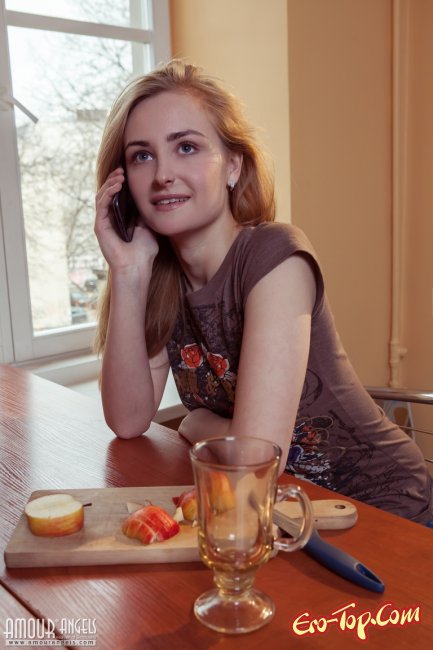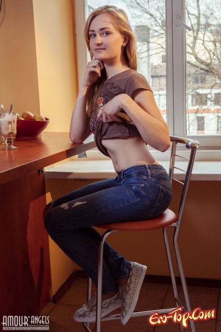 Смазливая стройная рыжая девушка уединилась на кухне с десертом и решила полностью обнажиться, чтобы покрасоваться и продемонстрировать молодой красивое тело. У милашки была соблазнительная гладенькая киска и упругие округлые ягодицы, за которые так и хотелось бы ухватиться. Помимо перечисленных достоинств у молоденькой соблазнительницы была небольшая упругая грудь.