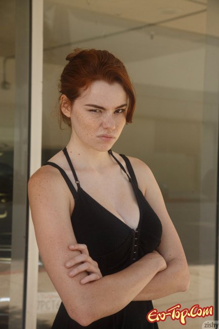 Сексуальная рыжая девушка с веснушками задирает подол чёрного платья и показывает свои кружевные трусики, ничуть не смущаясь такой откровенности. Милашка не продемонстрирует своих интимных прелестей, но и без того она кажется весьма сексуальной и с лёгкостью возбуждает к себе интерес...