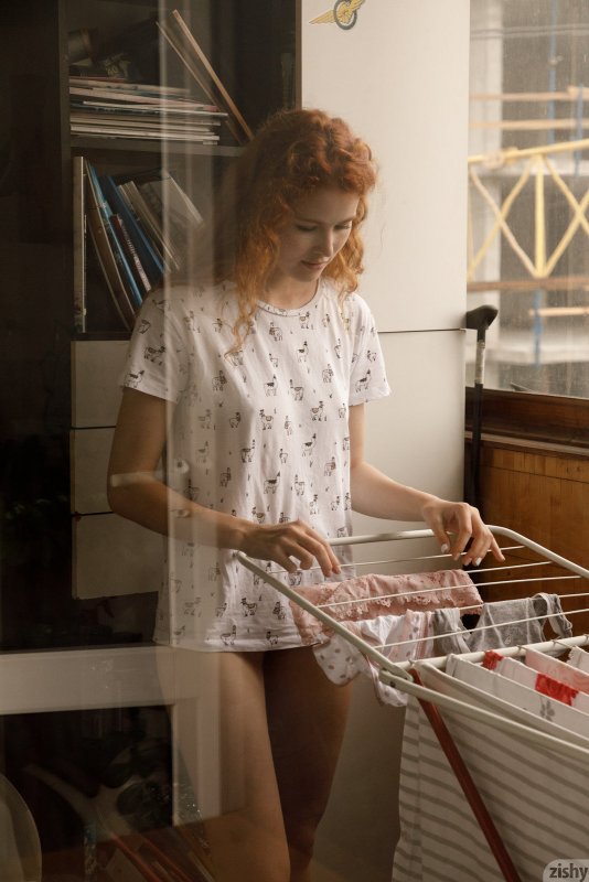 Чередуя разные места у себя дома, рыжая девица с веснушками старается максимально эротично позировать перед камерой в трусиках, в процессе все же скидывая некоторые вещи и показывая сексуальное тело. Располагаясь в постели, молоденькая стройняшка с маленькими сиськами подробно показала попочку, для этого прогибаясь раком и изгибая спинку.